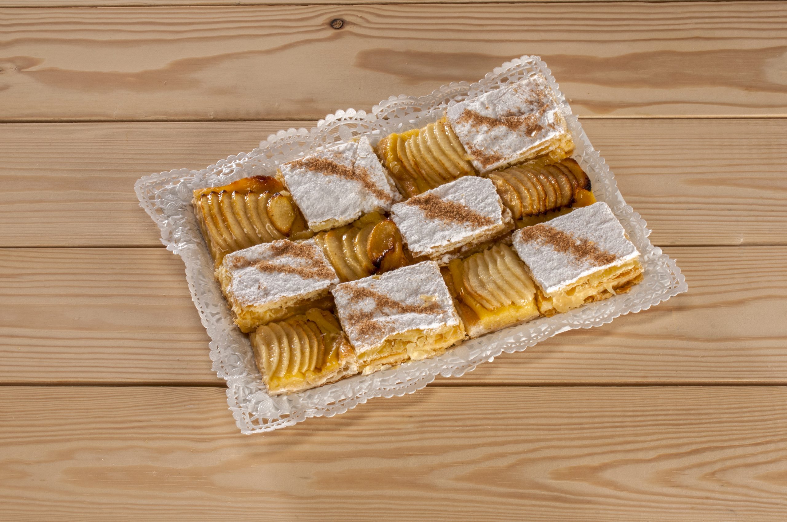 Bandeja con 6 mini piezas de milhojas y 6 pastel de manzana